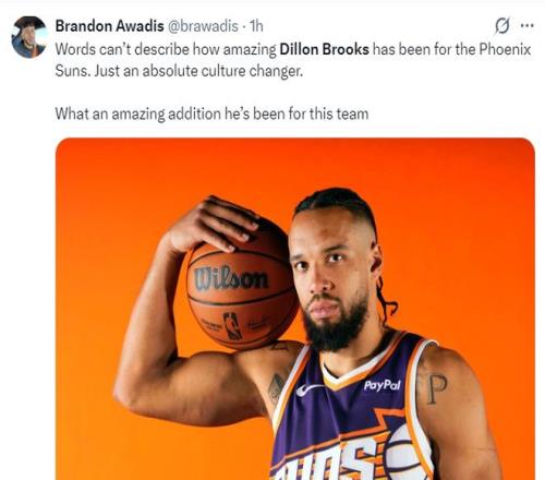 太阳记者布兰登-安瓦迪:无法用言语形容狄龙对太阳做出的贡献有多么巨大,他完全改变了凤凰城的文化,他对这个团队有着巨大的补充。